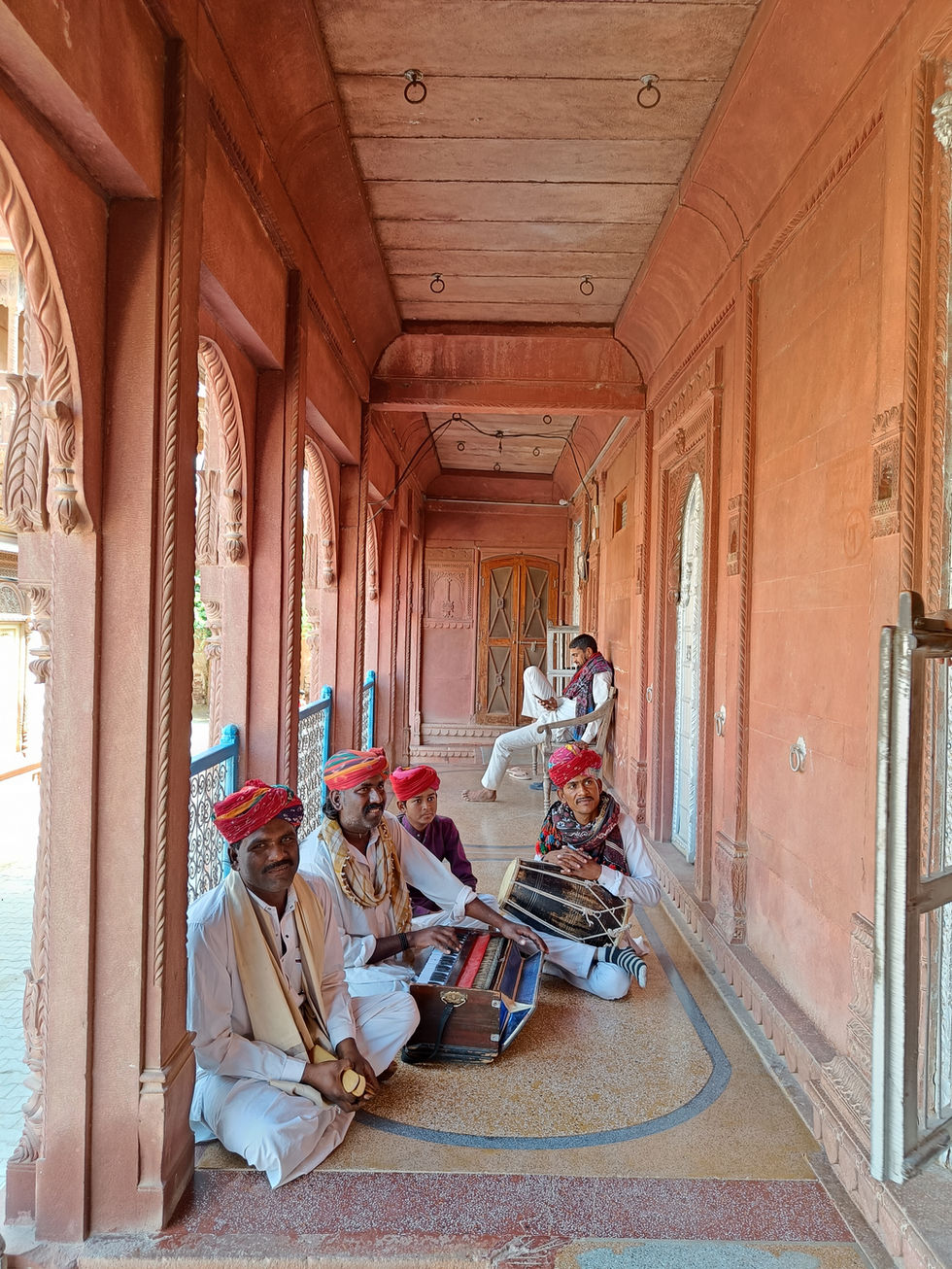 With a documented family history of ten generations, the Golechha family has always lived in Khichan, building their current Jain settlement of Havelis centuries ago. They were iconic businessmen and traders, also becoming social stalwarts through their various charitable undertakings and contributions to the development and welfare of Khichan and its people. The family's homes have always been open to friends, family, tourists, and passersby alike, for a helping hand, a place to sleep, a warm meal, or simply a cup of chai and some banter.
