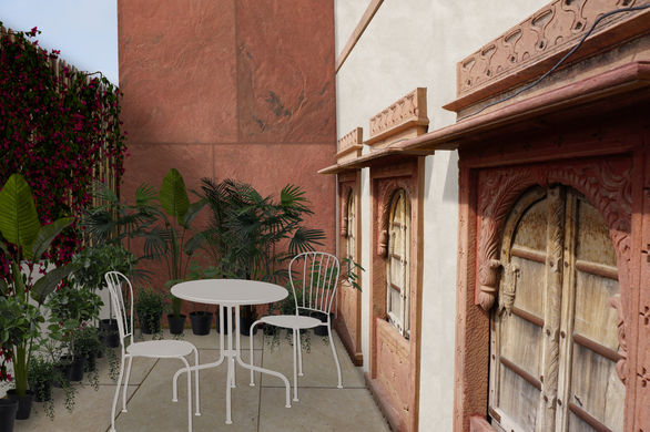 The haveli was painstakingly erected as part of a rich family legacy, engaging local craftsmen who worked mainly with the materials of the region - stone, lime and wood - to build this entirely by hand. Solid stone walls, intricate stone carvings, stone jaalis, lime floors and walls, and exquisitely detailed wooden doors and windows highlight the artisanal workmanship of the time. The haveli is laid out as a cluster of rooms around a central inner courtyard, while the periphery is open on all four sides, allowing the multitude of doors and windows to bring air and light inside. The basement is used for storage, while the terrace allows a cool space of relief during hot summer nights. Even today, rainwater is collected in an underground tank and can be used for drinking. The first image is a visualisation. The rest are of the existing condition.